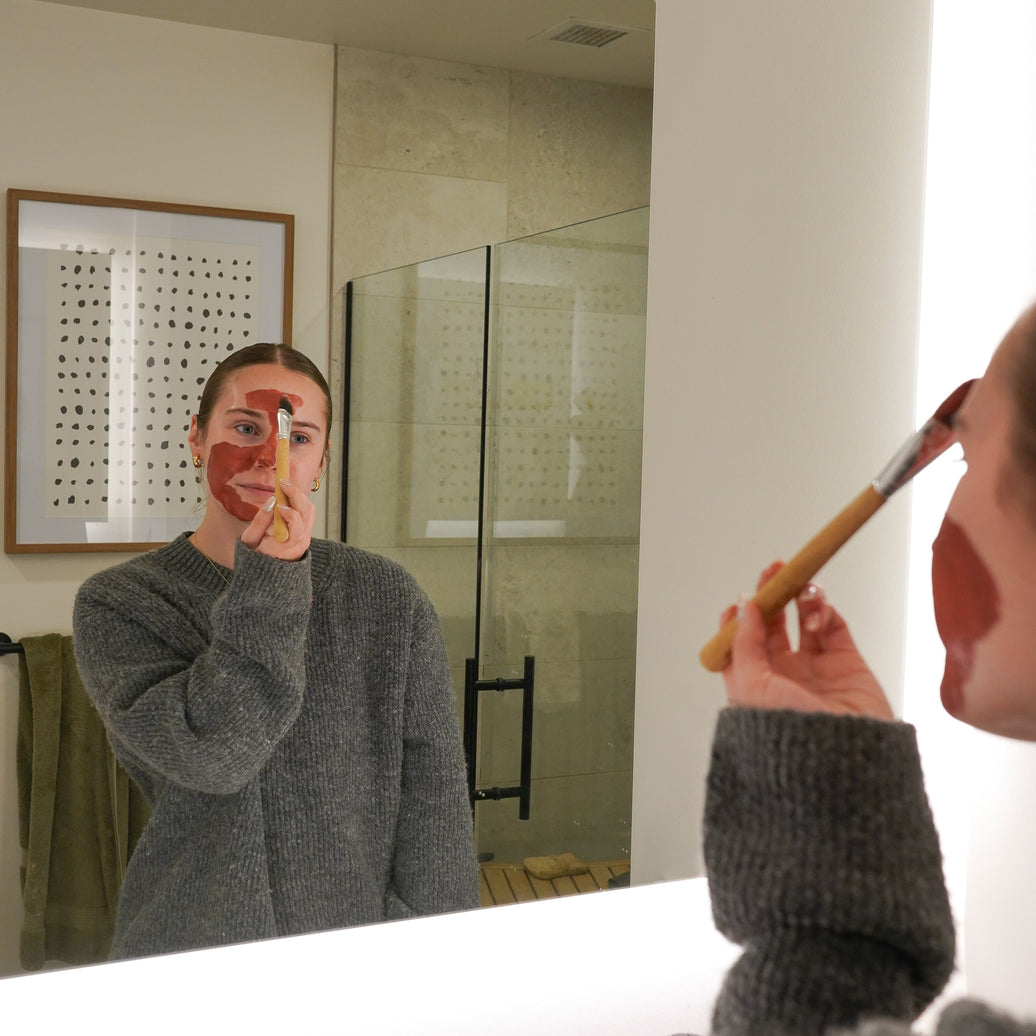 Step 3: Allow mask to dry for 5-10 minutes. Drying times vary depending on the clay and your skin type. As the clay dries you will feel a pulling and tightening sensation on your skin.