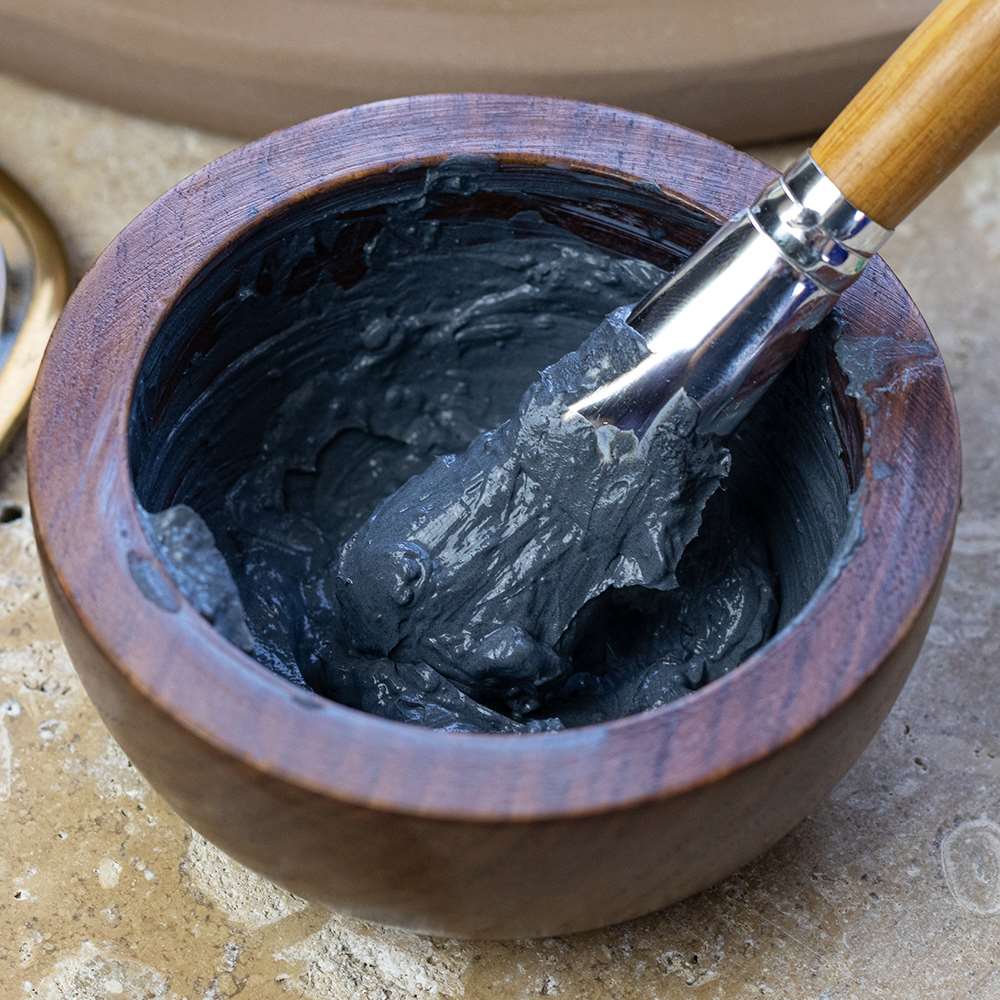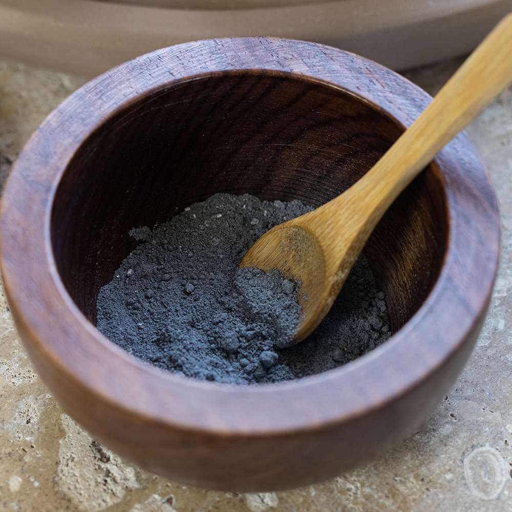 To ensure the most hygienic mask application, scoop the clay from the jar using the bamboo spoon, place into the wooden bowl, add water and mix well with the mixing spoon.