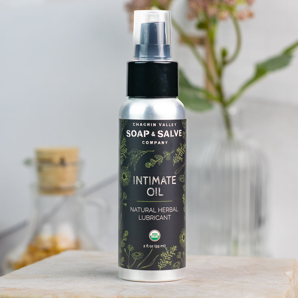 Developed with a light, easy-to-massage texture, our Intimate Oil, made with nourishing plant oils infused with skin-soothing botanicals, is ultra-moisturizing and adds slip and smoothness. It is formulated to treat your most delicate areas and help combat dryness. While developed to help relieve dryness during intimacy, this gentle oil can help ease the symptoms of dry, itching, or irritated vulvar skin anytime.