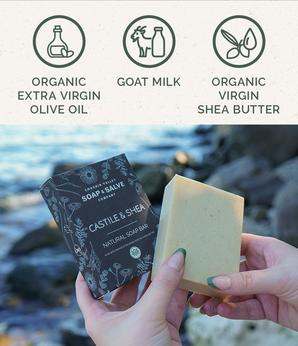 Made with certified organic Extra Virgin Olive Oil, Shea Butter & Sunflower Oil